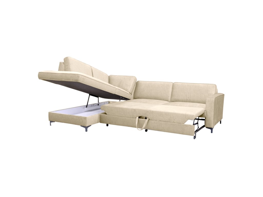 Rozkládací sedací souprava, krémová, levá, ERMON ROH