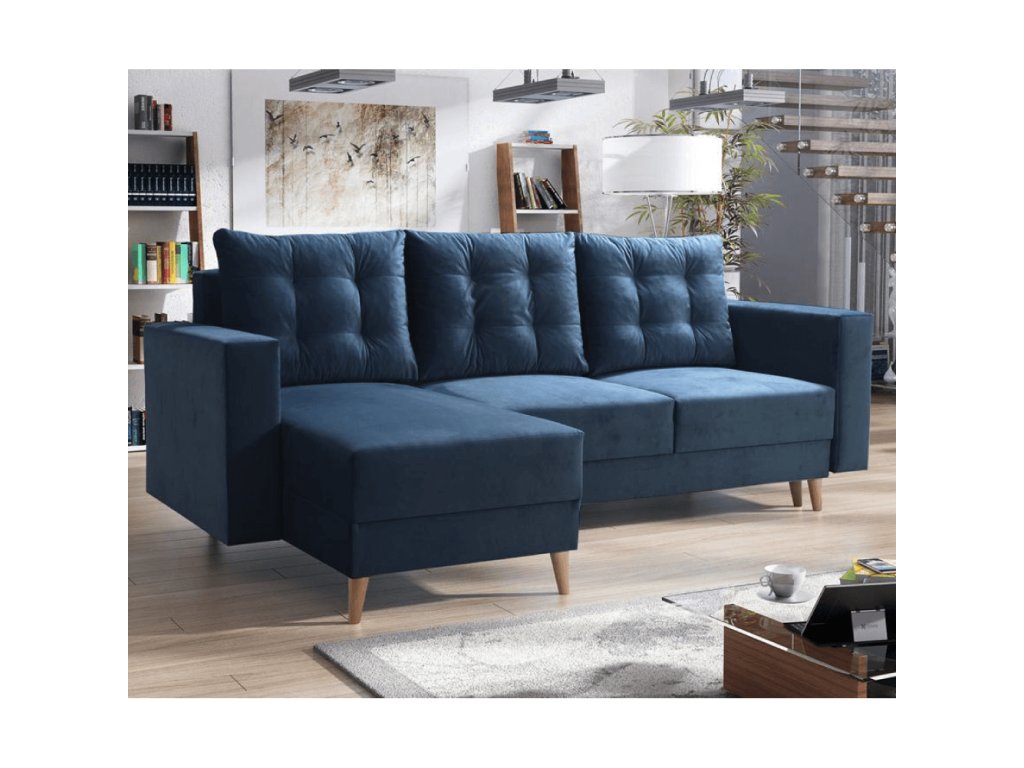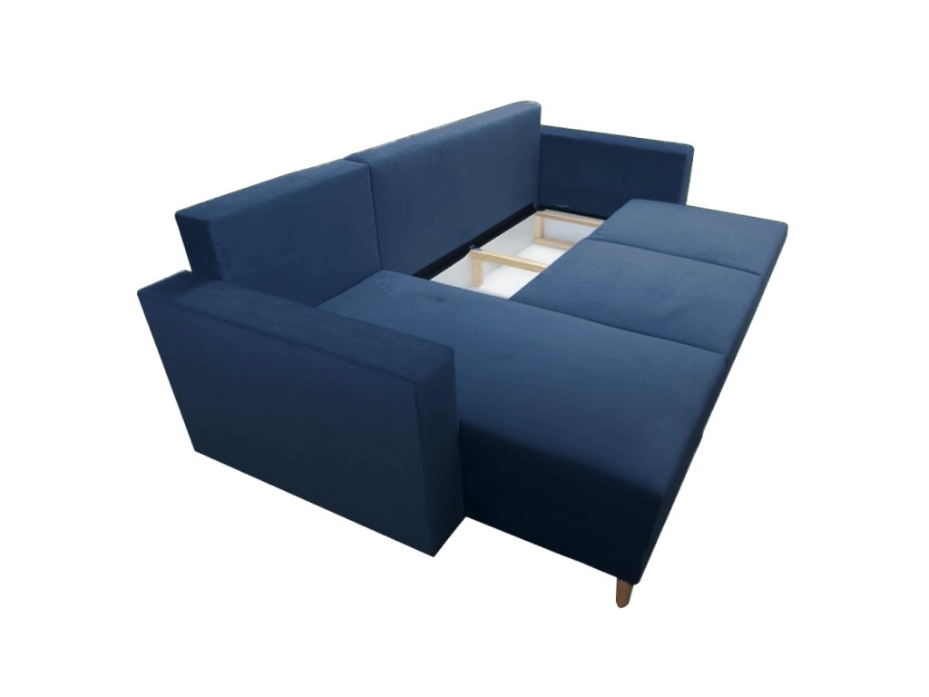 Rozkládací sedací souprava, modrá, levá, BLEKY ROH