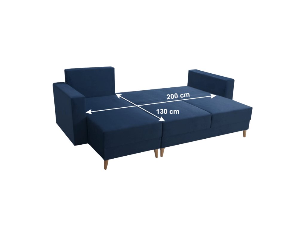 Materiál čalounění: látka Kronos 9 Oděruodolnost látky podle testu Martindale: 60 000 Barva čalounění: modrá Rozměry (ŠxHxV): 235x145x90 cm Plocha na spaní (ŠxD): 130x200 cm Výška sedu: 46 cm Hloubka sedu: 52 cm Šířka otomanu: 68 cm Šířka sedáku: 135 cm Šířka opěrky na ruku: 15 cm Výška spodního prostoru od podlahy: 13 cm Na dřevěných nožičkách Barva nožiček: buk Nosnost na osobu: 90 kg Výplň: pružina falista + Pur pěna Dodávána se třemi polštáři Rozměry polštářů (ŠxV): 68x58 cm Rozkládací Rohová Celočalouněná S úložným prostorem Levé provedení Dodáváno v demontuBalení (počet kusů : 3)