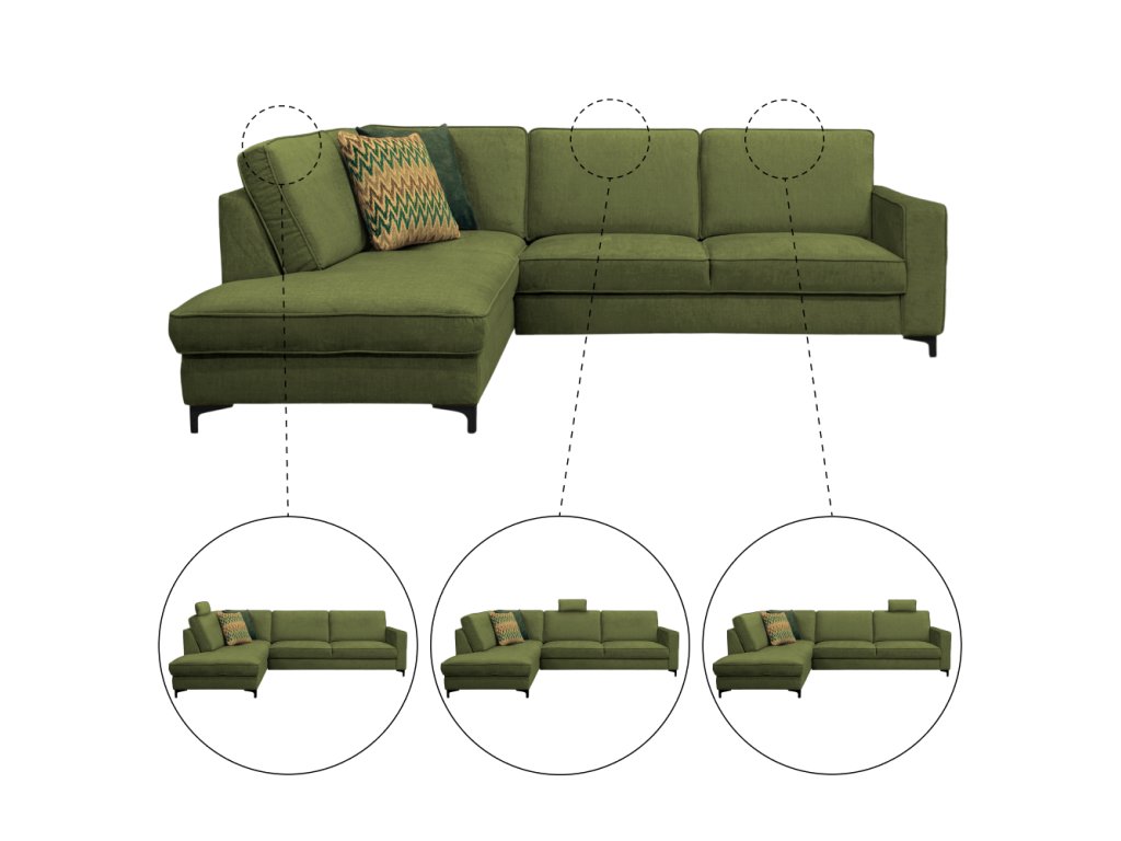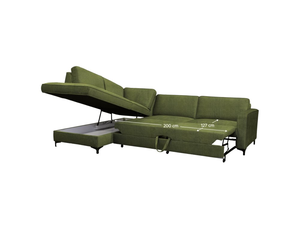 Rozkládací sedací souprava, olivová, levá, ERMON ROH