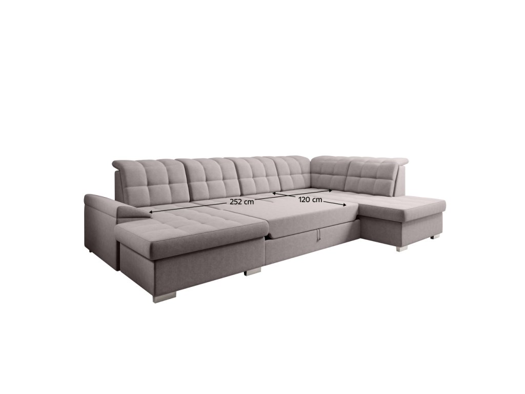 Materiál čalounění: látka Soro 23 Oděruodolnost látky podle testu Martindale: 90 000 Barva čalounění: šedobéžová Taupe Rozměry (ŠxHxV): 320x202/155x88/103 cm Plocha na spaní (ŠxD): 120x252 cm Výška sedu: 41 cm Hloubka sedu: 54 cm Šířka otomanu: 98 cm Šířka sedáku: 135 cm Na nožičkách Materiál nožiček: plast Barva nožiček: stříbrná Výška spodního prostoru od podlahy: 5 cm Nosnost na osobu: 90 kg Výplň: pružina falista + Pur pěna Rozkládací Rohová Celočalouněná Tvar U Se dvěma úložnými prostory Polohovací opěrky hlavy Pravé provedení Dodáváno v demontu Možnost objednání v 7 barevných odstínech látky Soro v ceně 44.190 Kč s dodací lhůtou 6-8 týdnů. Při individuální objednávce je třeba zaplatit 20% zálohu z dané částky. Po uhrazení zálohy bude Váš požadavek zadán do výroby.Balení (počet kusů : 3)