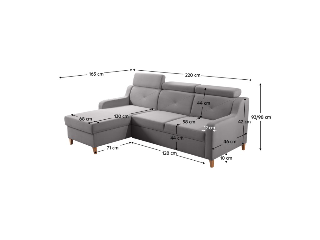 Materiál čalounění: látka Trinity 33 Oděruodolnost látky podle testu Martindale: 55 000 Barva čalounění: světle šedá Rozměry (ŠxHxV): 220x165x93/98 cm Plocha na spaní (ŠxD): 120x196 cm Výška sedu: 44 cm Hloubka sedu: 58 cm Šířka otomanu: 68 cm Hloubka otomanu: 130 cm Šířka sedáku: 128 cm Rozměry opěrky na ruce (ŠxHxV): 12x46x42 cm Výška spodního prostoru od podlahy: 10 cm Na dřevěných nožičkách Nosnost na osobu: 90 kg Výplň: pružina falista + Pur pěna Rozkládací Rohová Celočalouněná S úložným prostorem Polohovací opěrky hlavy Pravé provedení Dodáváno v demontu Možnost objednání ve 4 barevných odstínech látky Trinity s dodací lhůtou 6-8 týdnů. Při individuální objednávce je třeba zaplatit 20% zálohu z dané částky. Po uhrazení zálohy bude Váš požadavek zadán do výroby.Balení (počet kusů : 2)