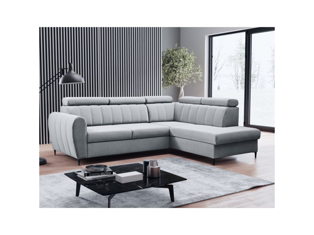 Rozkládací sedací souprava, světle šedá, pravá, KORIO L
