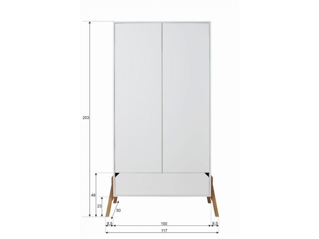 Šatní skříň LOTTA snow je dvoudveřová a má 1 zásuvku.