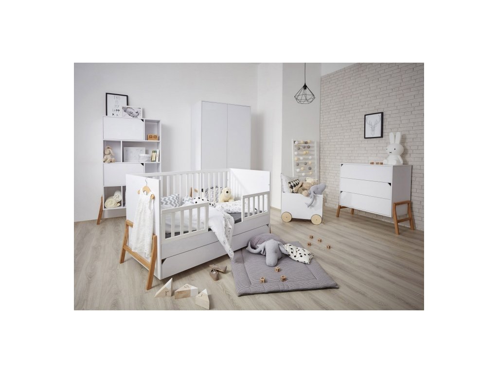LOTTA - tato kolekce nábytku je ideální volbou pro rodiče, kteří hledají nábytek s moderním, originálním designem, a také nábytek praktický. Hlavním znakem jsou jednoduché vysoké dubové nožky u jednotlivých segmentů nábytku, kdy v kombinaci tohoto masivního dřeva se svou krásnou kresbou a elegantní sněhově bílou matovou barvou vyjadřuje lehkost a nadčasovost této kolekce. Velkou výhodou tohoto řešení je snazší udržování pořádku a čistoty, což ocení především rodiče dětí s alergiemi.