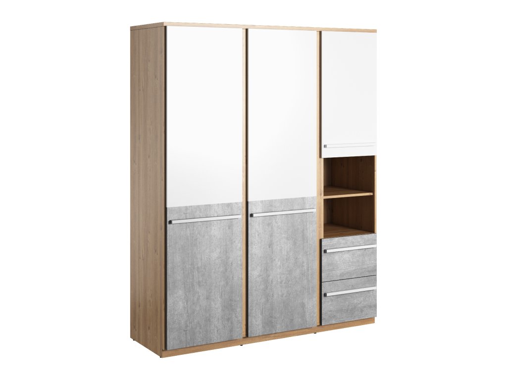 Šatní skříň PLANO je třídveřová a má 2 zásuvky.