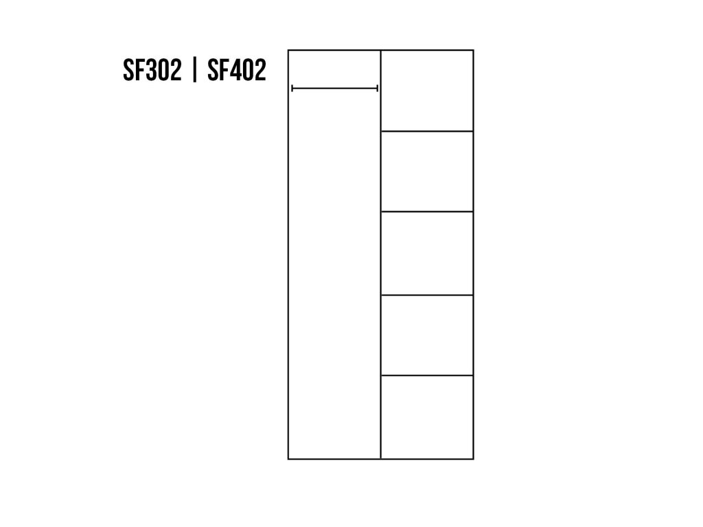Šatní skříň SF302 je dvoudveřová, má 4 police a šatní tyč.