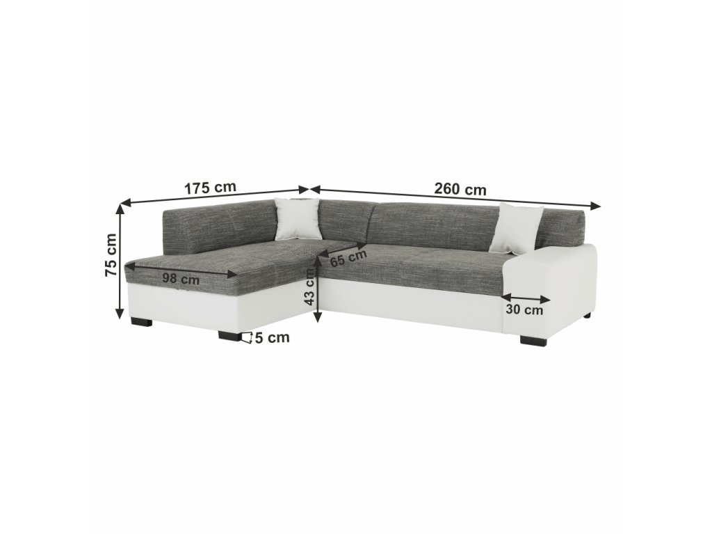 ;"Materiál: ekokůže / látka Berlin Oděruodolnost textilie podle testu Martindale: 55 000 oděrek Oděruodolnost ekokůže podle testu Martindale: 100 000 oděrek Barva: bílá / 01 šedý melír Rozměry (ŠxHxV): 260x175x75 cm Plocha na spaní (ŠxD): 135x195 cm Výška sedu: 43 cm Hloubka sedu: 65 cm Výška spodního prostoru od podlahy: 5 cm Nosnost na osobu: 90 kg celočalouněná rohová rozkládací S úložným prostorem levé provedení Možnost objednání v 4 barevných odstínech ekokůže a ve 4 barevných odstínech látky Berlin v ceně 20.150 Kč. . Při individuální objednávce je třeba zaplatit 20% zálohu z dané částky. Po uhrazení zálohy bude Vaša objednávka zadána do výroby. Doba dodání 6-8 týdnů. Dodávané v demontu.Balení (počet kusů : 2)