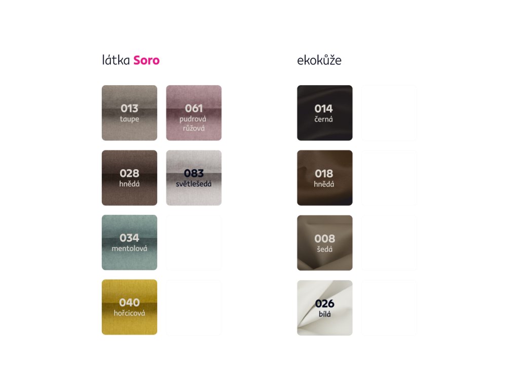 Materiál: ekokůže / látka Soro Oděruodolnost textilie Soro podle testu Martindale: 90 000 - 100 000 oděrů Oděruodolnost ekokůže podle testu Martindale: 100 000 oděrek Barva: černá / 97 tmavě šedá Rozměry (ŠxHxV): 280x174x83 cm Plocha na spaní (ŠxD): 130x210 cm Výška sedu: 43 cm Hloubka sedu: 63 cm Výška spodního prostoru od podlahy: 5 cm Nosnost na osobu: 90 kg celočalouněná rohová rozkládací S úložným prostorem pravé provedení Dodávané v demontu Vybrat si můžete i z dalších 4 barevných provedení ekokůže a 6 barevných provedení látky Soro v ceně 28.150,- Kč. Při individuální objednávce je třeba zaplatit 20% zálohu z dané částky. Po uhrazení zálohy bude Vaša objednávka zadána do výroby. Dodací lhůta je 6-8 týdnů.Balení (počet kusů : 2)