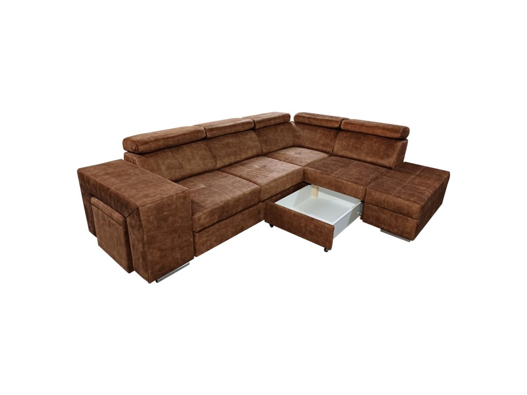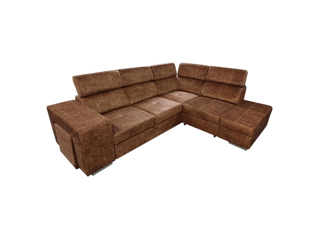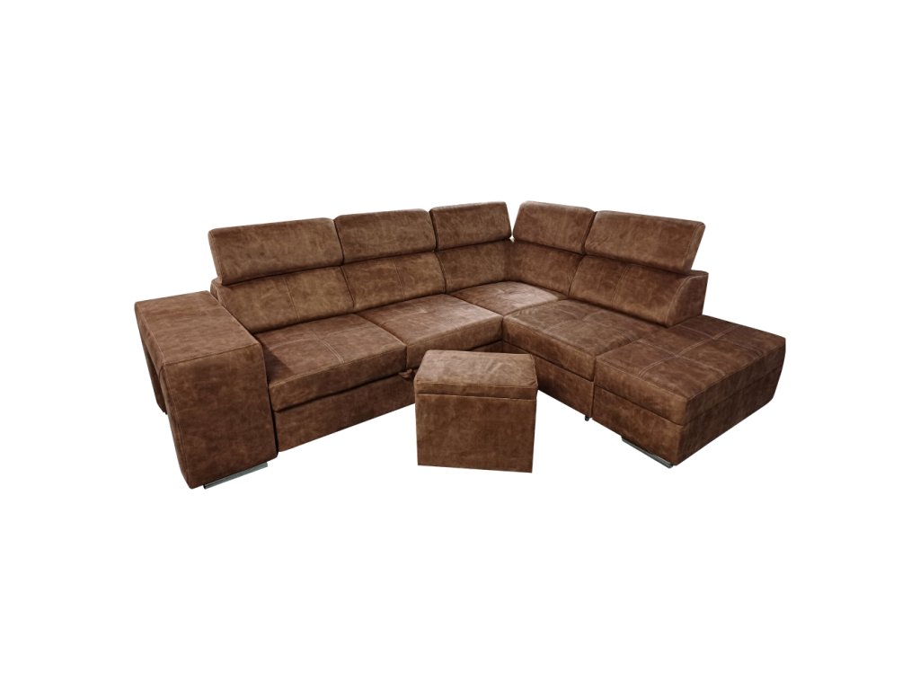 Materiál čalounění: látka Country 8 Oděruodolnost textilie podle testu Martindale: 65 000 oděrů Barva: hnědá Materiál konstrukce: borového dřeva/bukového dřeva/laminátová deska Rozměry (ŠxHxV): 264x210x79/97 cm Plocha na spaní (ŠxD): 130x190 cm Výška sedu: 43 cm Hloubka sedu: 56 cm Rozměry otomanu (ŠxH): 97x165 cm Rozměry opěrky na ruku (ŠxHxV): 30x97x58 cm S taburetem Rozměry taburetu (ŠxHxV): 40x33x48 cm Celočalouněná Rozkládací Rohová S úložným prostorem Pravé provedení Na nožičkách Barva nožiček: chromová Výška spodního prostoru od podlahy: 4,5 cm Polohovací opěrky hlavy 5 stupňové polohování opěrek Výplň: pružina falista/pur pěna/molitan Dodáváno v demontu Možnost objednání v 8 barevných odstínech látky Country v ceně 35 990 Kč s dodací lhůtou 6-8 týdnů. Při individuální objednávce je třeba zaplatit 20% zálohu z dané částky. Po uhrazení zálohy bude Váš požadavek zadán do výroby.Balení (počet kusů : 3)