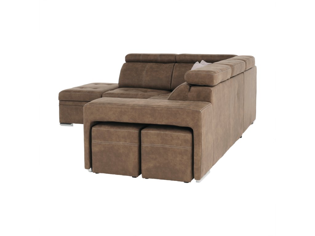Celočalouněná rohová rozkládací sedací souprava s úložným prostorem a s polohovacím záhlavím. Materiál: Látka Preston / látka Jasmine Oděruodolnost textilie Preston podle testu Martindale: 68 000 oděrek Oděruodolnost textilie Jasmine podle testu Martindale: 90 000 oděrek Barva: hnědá / světle levé provedení. Rozměry (ŠxHxV): 275x220x85 / 100 cm, plocha na spaní (ŠxD): 120x190 cm Výška spodního prostoru od podlahy: 5 cm Výška sedu: 43 cm Hloubka sedu: 53 cm Dodávané s polštáři a s dvěma taburety Nosnost na osobu: 90 kg Dodávané v demontu. Máme pro vás hned čtyři barvy látky Preston a čtyři barvy látky Jasmine, kombinovat tedy můžete dle libosti. Cena sedačky na individuální objednávku je 39.790 Kč. Při individuální objednávce je třeba zaplatit 20% zálohu z dané částky. Po uhrazení zálohy bude Váš požadavek zadána do výroby. Dodací doba 6-8 týdnů.Balení (počet kusů : 2)