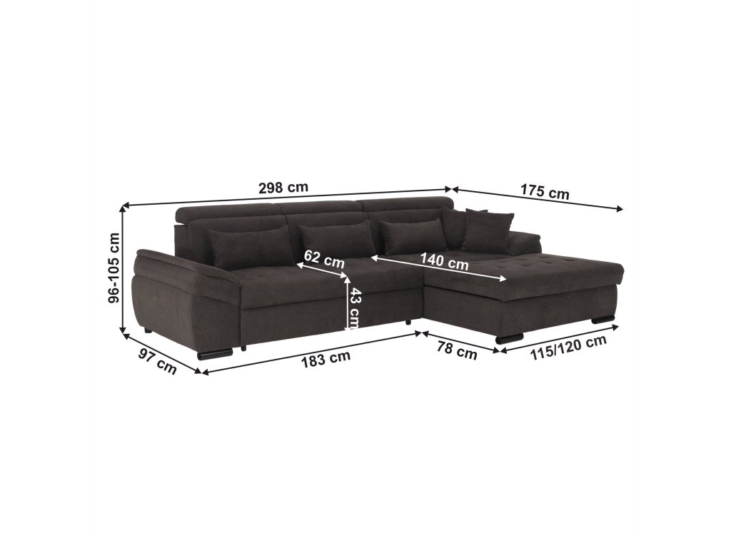 ;"Materiál: látka Alfa 120 Oděruodolnost textilie podle testu Martindale: 55 000 oděrek Barva: 20 šedá Rozměry (ŠxHxV): 298x175x96 / 105 cm plocha na spaní (ŠxD): 125x220 cm Výška sedu: 43 cm Hloubka sedu: 62 cm Výška spodního prostoru od podlahy: 5 cm Šířka otomanu: 115/120 cm Hloubka otomanu: 140 cm Nosnost na osobu: 90 kg celočalouněná rohová rozkládací S úložným prostorem Dodávána s polštáři S polohovacími opěrkami hlavy 5 polohovacích opěrek pravé provedení Dodávané v demontu. Možnost objednání v 8 barevných provedeních látky Alfa v ceně 41.590 Kč. Při individuální objednávce je třeba zaplatit 20% zálohu z dané částky. Po uhrazení zálohy bude Vaša objednávka zadána do výroby. Dodací lhůta 6-8 týdnů.Balení (počet kusů : 2)