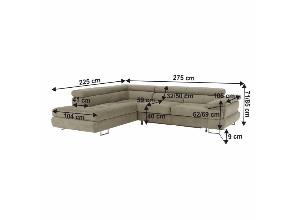 Materiál: látka Soro 13 Oděruodolnost textilie podle testu Martindale: 90 000- 100 000 oděrů Barva: světle hnědý melír Rozměry (ŠxHxV): 275x225x71/85 cm. Výška sedu: 40 cm Hloubka sedu: 59 cm Výška spodního prostoru od podlahy: 9 cm Výška zádové opěrky: 32/50 cm Hloubka sklopené zádové opěrky: 41 cm Opěrka na ruku (HxV): 105x62/69 cm Plocha na spaní: 125x200cm Šířka otomanu: 104 cm Nosnost: 90 kg Rohová Rozkládací S úložným prostorem Dekorativní prošití Zajímavá opěrka 3 polohovací opěrky hlavy 5 stupňové polohování opěrek Celočalouněná Pružinová výplň Nožičky kovové s povrchovou úpravou chrom Levé provedení Dodáváno bez dekorativních polštářků Dodáváno v demontu Nabízíme vám možnost objednat si sedačku v 7 barevných provedeních látky Soro dle vzorníku. Váš výběr napište přímo do poznámky v objednávce. Cena sedačky na individuální objednávku je verze s rozkladem a úložným prostorem BUTON R 40.250 Kč a pevná verze bez úložného prostoru BUTON P 37.090 Kč. Při individuální objednávce je třeba zaplatit 20% zálohu z dané částky. Po uhrazení zálohy bude Váš požadavek zadán do výroby. Doba dodání 6-8 týdnů.Balení (počet kusů : 3)