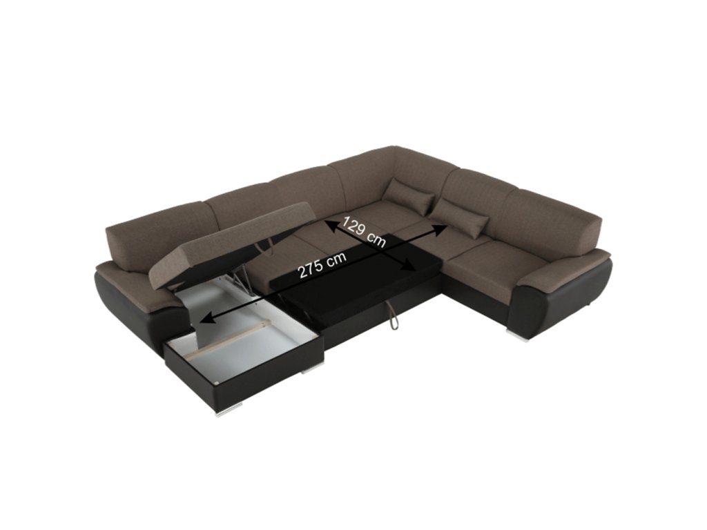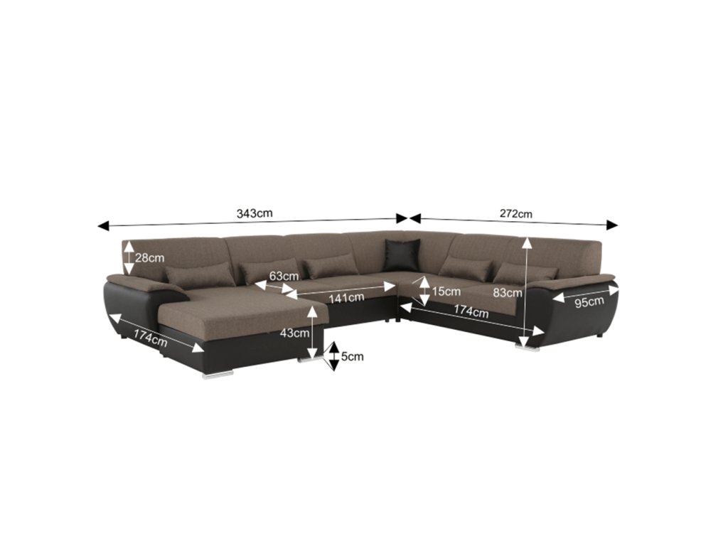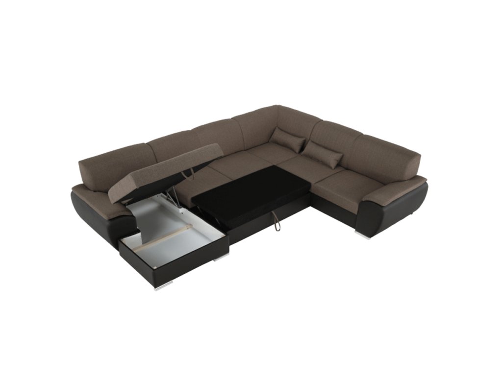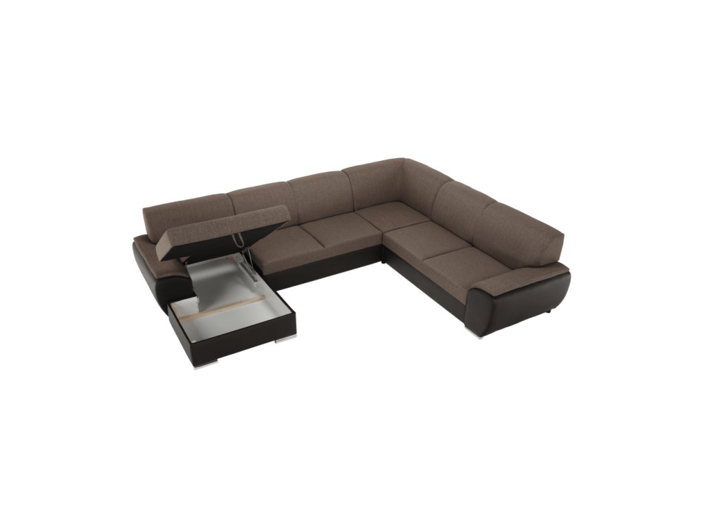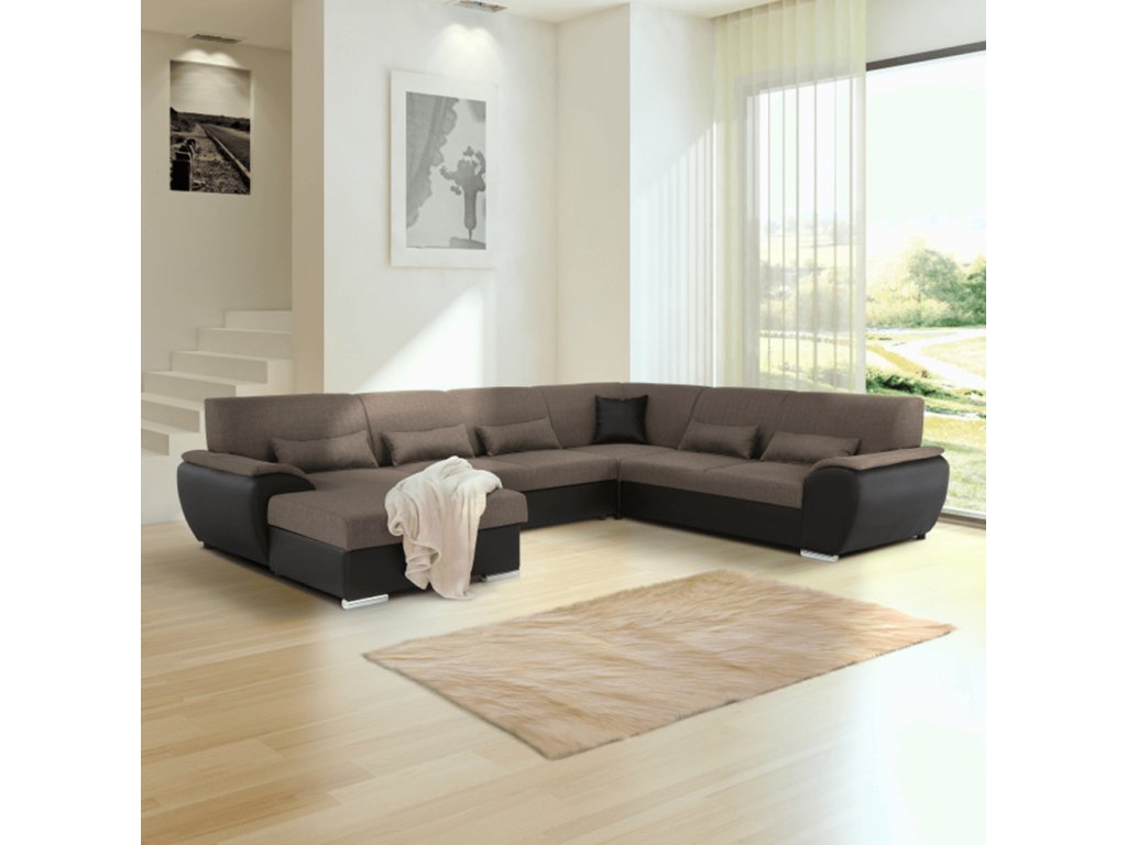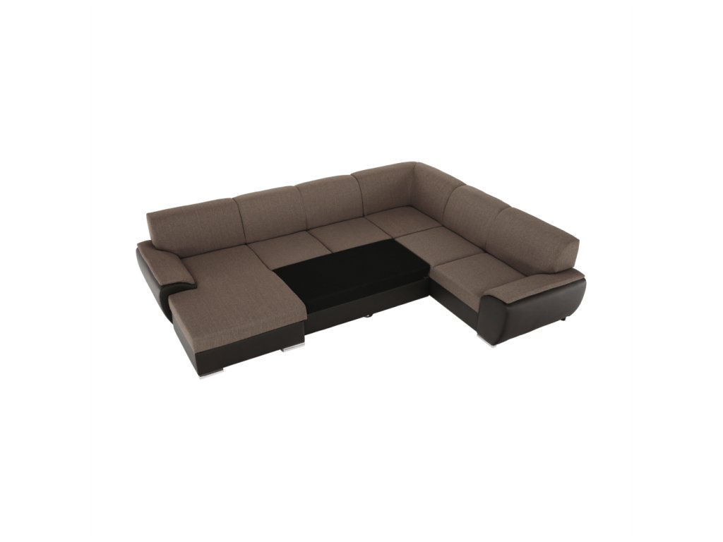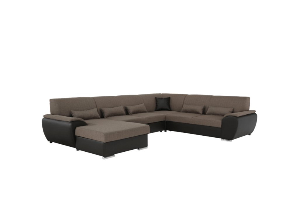 Sedací souprava ve tvaru U, látka hnědá / ekokůže hnědá, levá, EMILY U