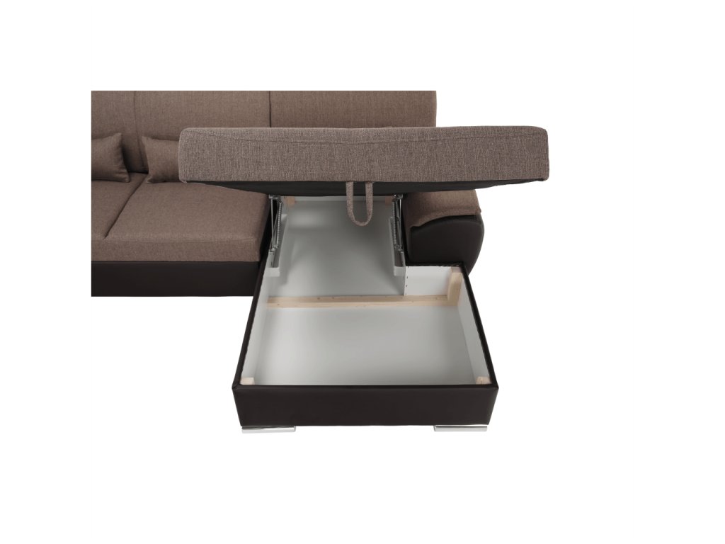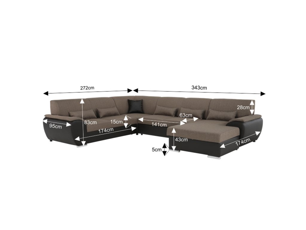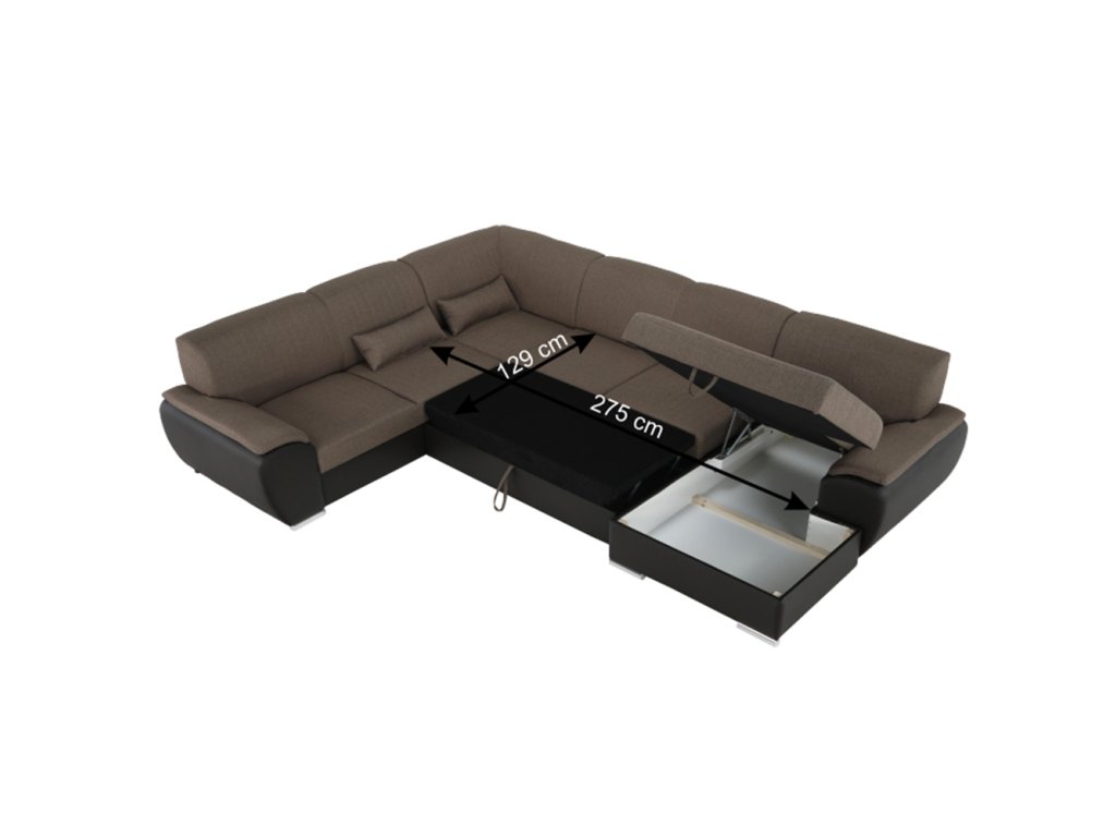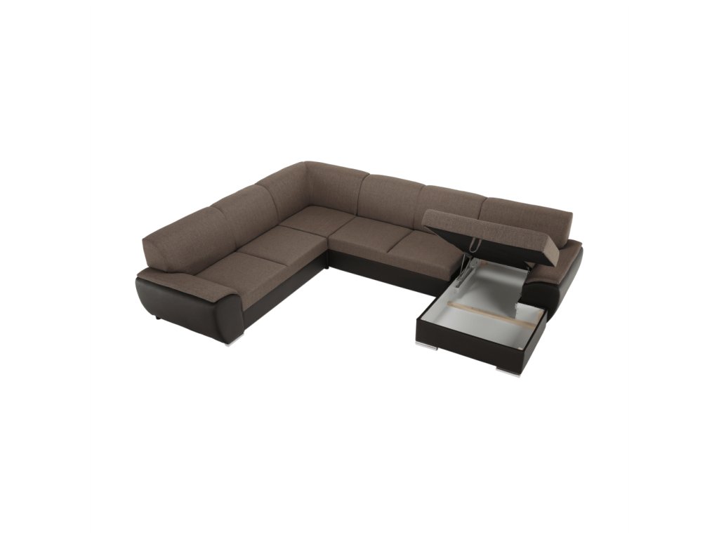 ;"Celočalouněná rozkládací sedací souprava EMILY U s úložným prostorem. levé provedení. Materiál: ekokůže hnědá / látka Portland 24 hnědá. Oděruodolnost textilie Portland podle testu Martindale: 52 000 oděrek Oděruodolnost ekokůže podle testu Martindale: 100 000 oděrek Rozměry (ŠxVxH): 343x83x272 / 174, plocha na spaní (DxŠ): 275x129 cm. Výška spodního prostoru od podlahy: 5 cm Nosnost na osobu: 90 kg Možnost objednání v 4 barevných odstínech ekokůže a v 6 barevných odstínech látky Portland v ceně: 42.190 Kč. Při individuální objednávce je třeba zaplatit 20% zálohu z dané částky. Po uhrazení zálohy bude Vaša objednávka zadána do výroby. Dodací lhůta 6-8 týdnů.Balení (počet kusů : 4)