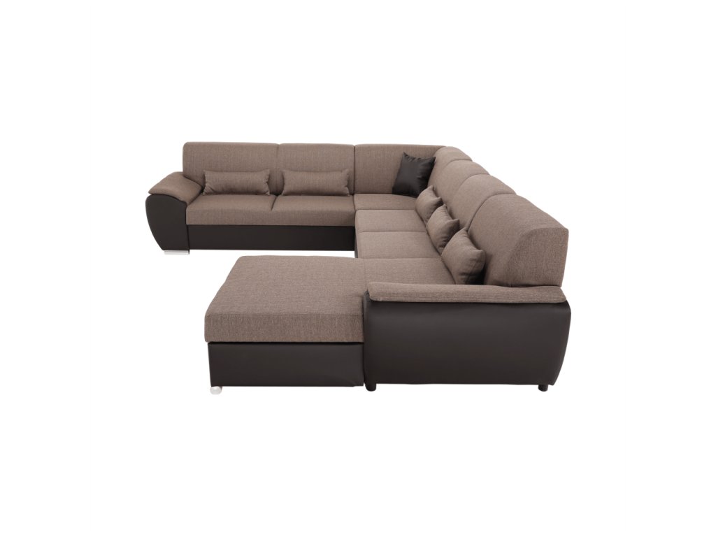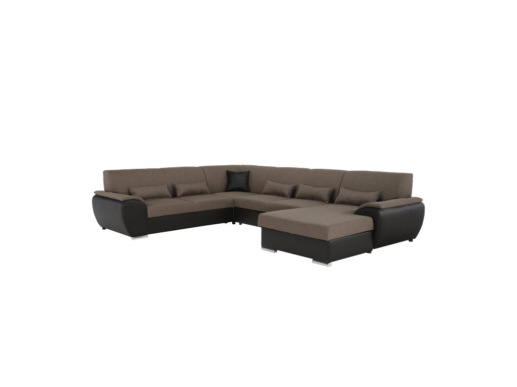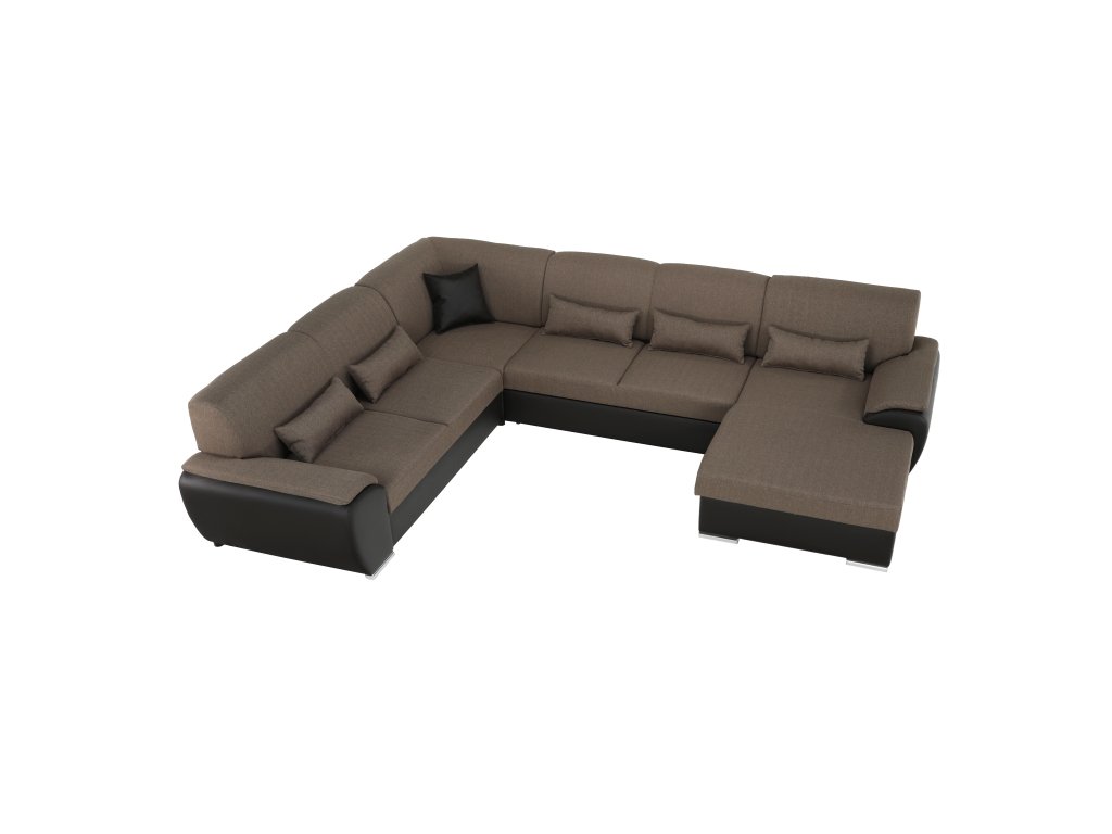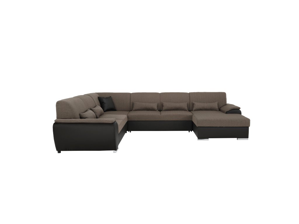 Sedací souprava ve tvaru U, látka hnědá / ekokůže hnědá, pravá, EMILY U