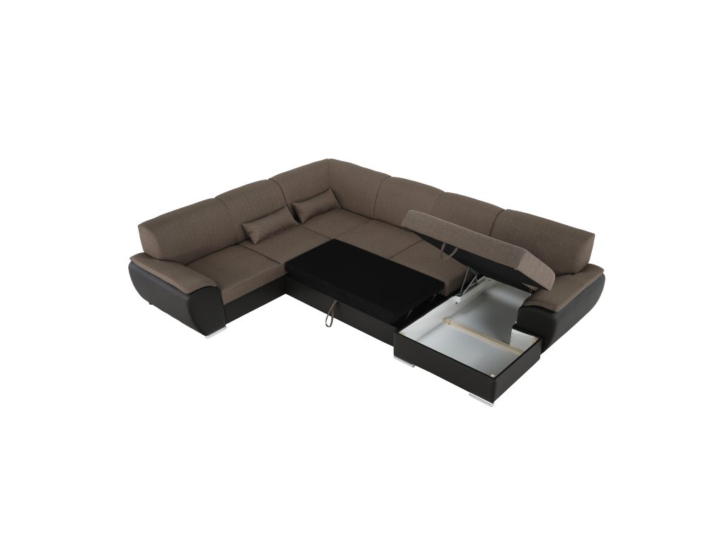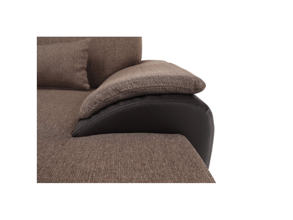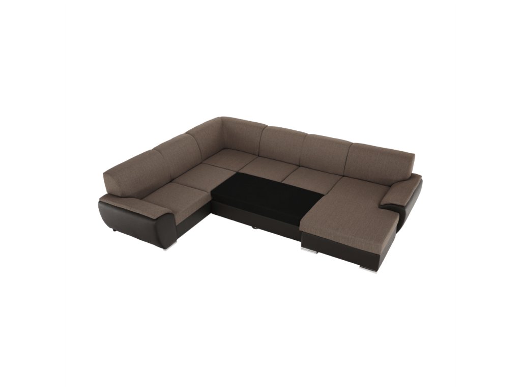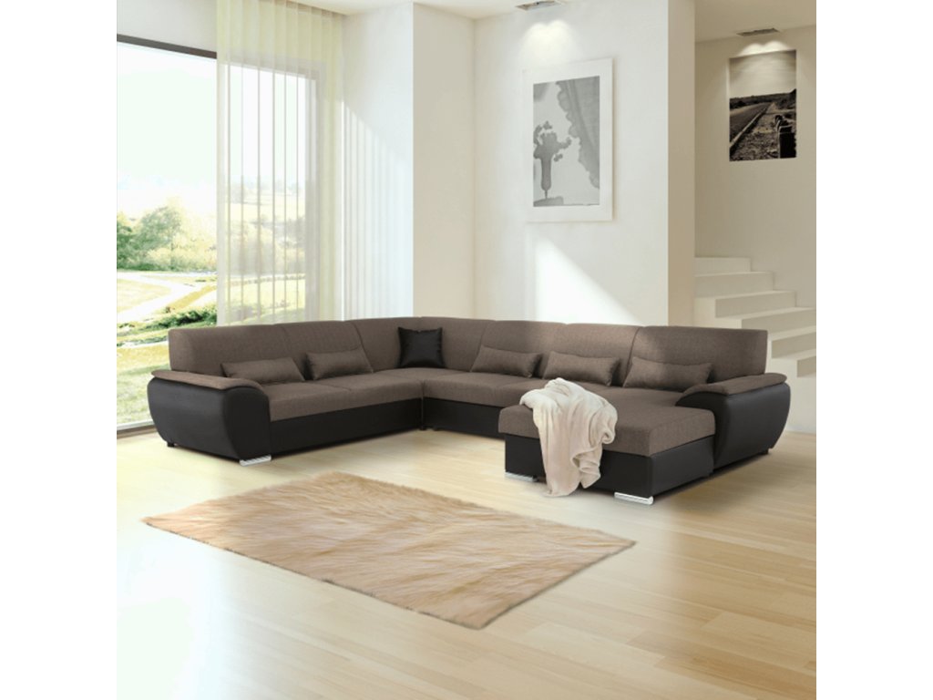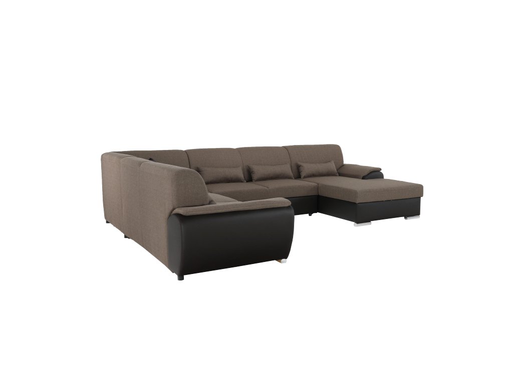 Sedací souprava ve tvaru U, látka hnědá / ekokůže hnědá, pravá, EMILY U