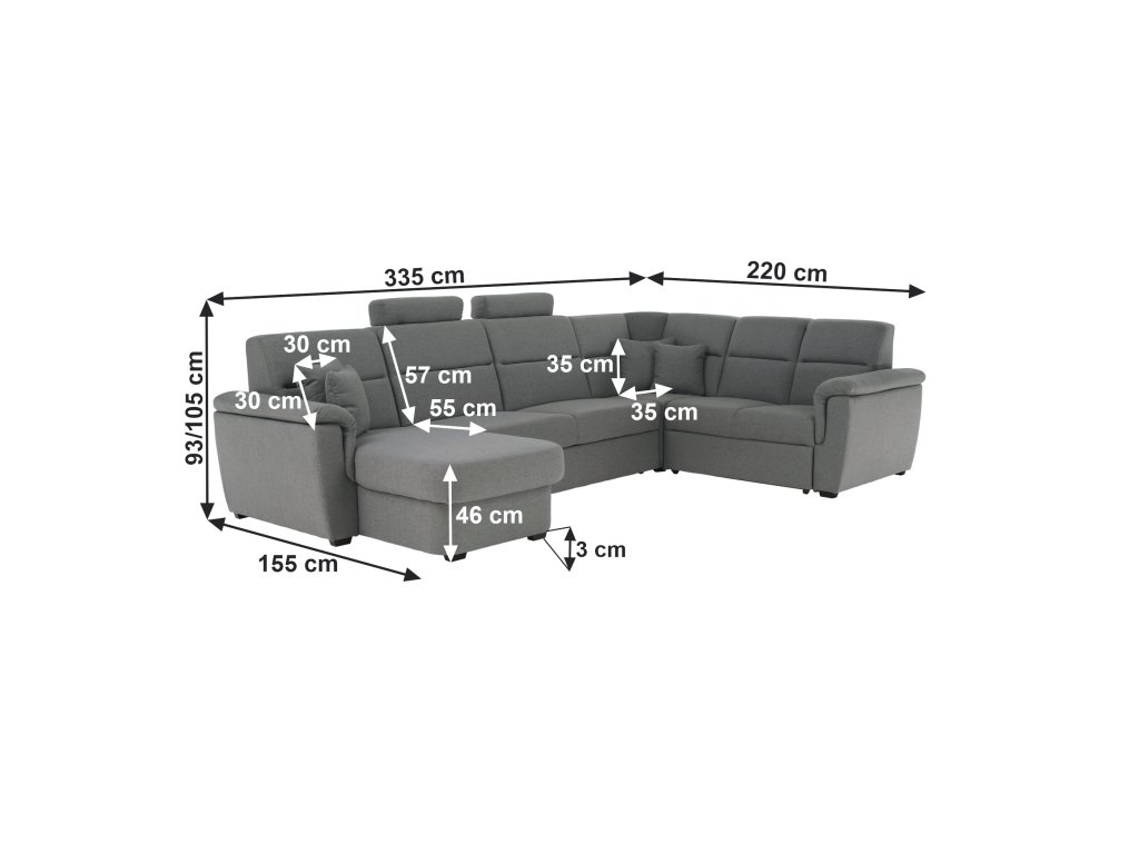 Sedací souprava ve tvaru U, látka šedá, levá, BORN U