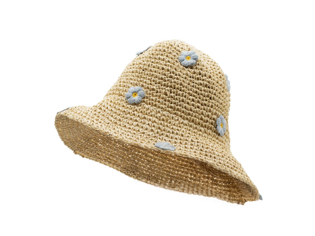 Sluneční klobouk – Béžová a modré květiny kombinují přírodní slámový základ s jemnými květinovými akcenty pro lehký, letní vzhled. Jemný béžový tón udržuje design všestranný, zatímco drobné modré květinové detaily dodávají jemný barevný nádech. Jeho uvolněný, jemně tvarovaný lem vytváří ležérní styl, který doplňuje ležérní outfity, sváteční oblečení a lehké letní látky. Květinové detaily dodávají klobouku svěží, hravý charakter, aniž by přebíjely přirozenou texturu slámy. Je to krásná volba pro dny u moře, venkovní kavárny nebo letní procházky, která dodává jemný dekorativní prvek do sezónního šatníku. Pro maloobchodníky vytváří kombinace neutrální slámy a jemných modrých akcentů atraktivní ústřední bod v letních doplňkových vitrážích.Doplňkové parametry