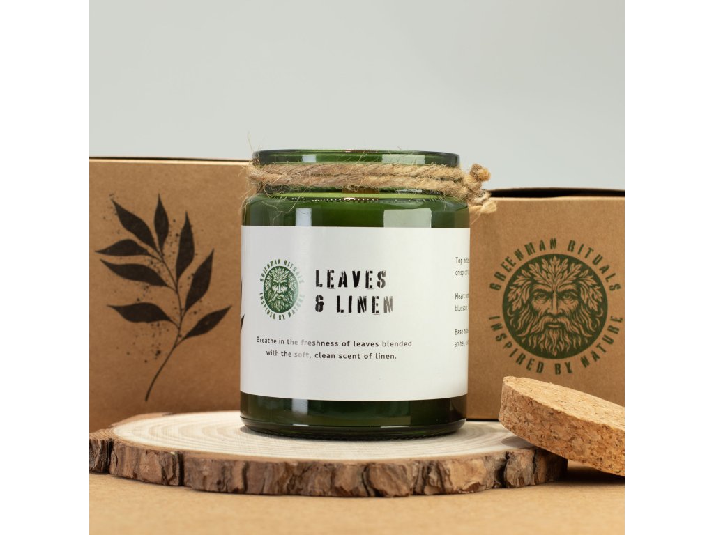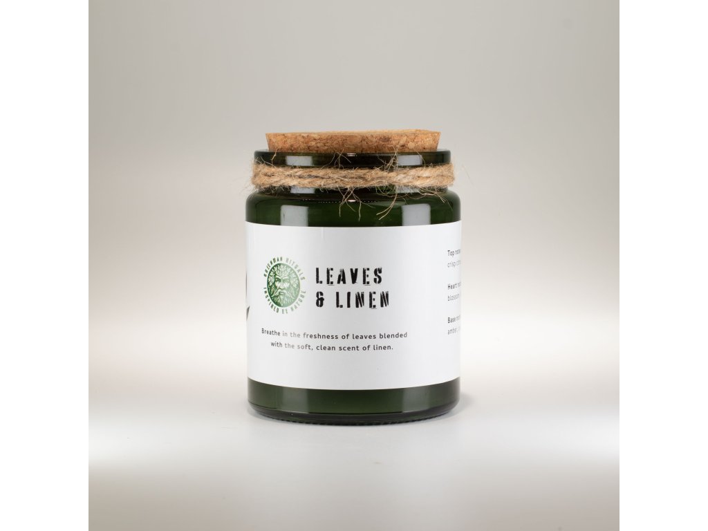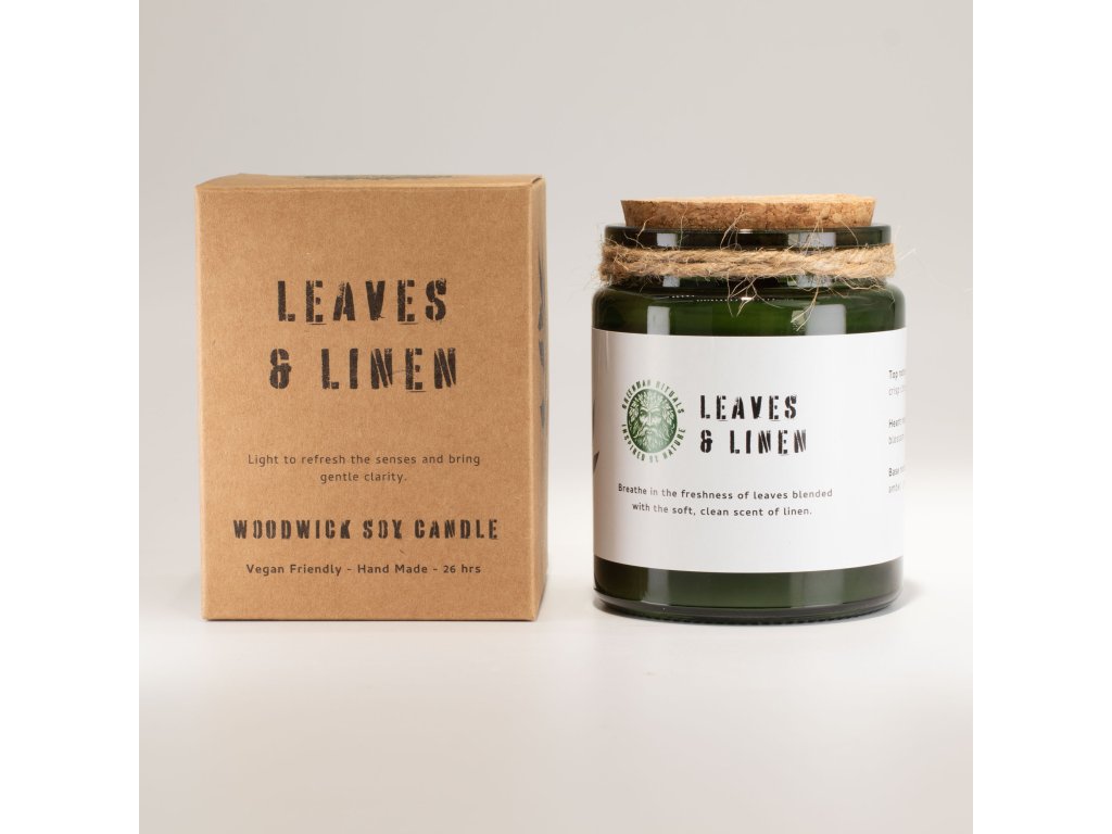 Sójová Svíčka s Dřevěným Knotem - Listy a Len