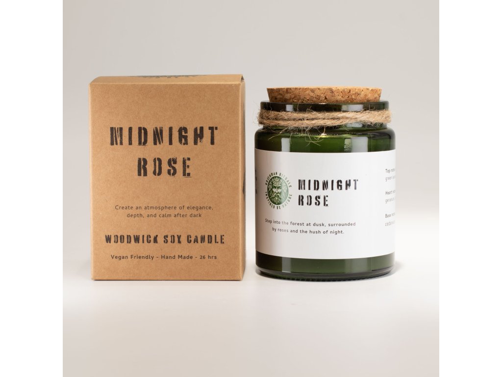 Sójová Svíčka s Dřevěným Knotem - Půlnoční Růže