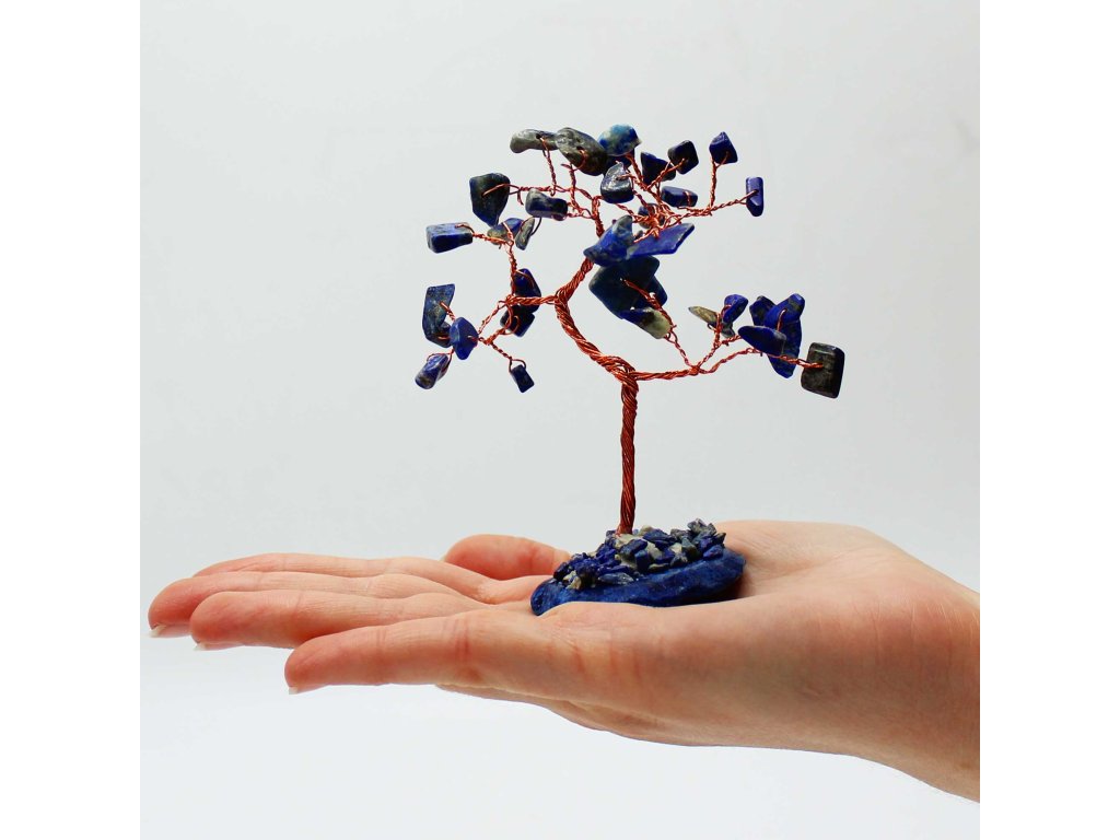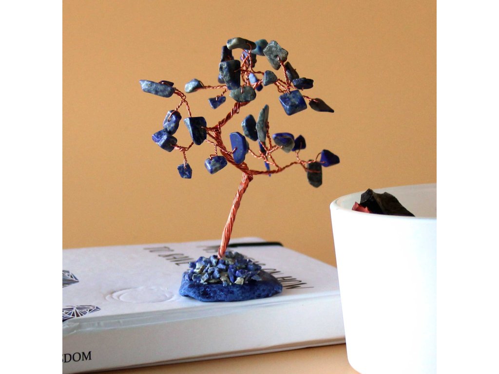 Stromek s Drahými Kameny - Sodalit - Podstavec z Modrého Achátu (35 kamenů)