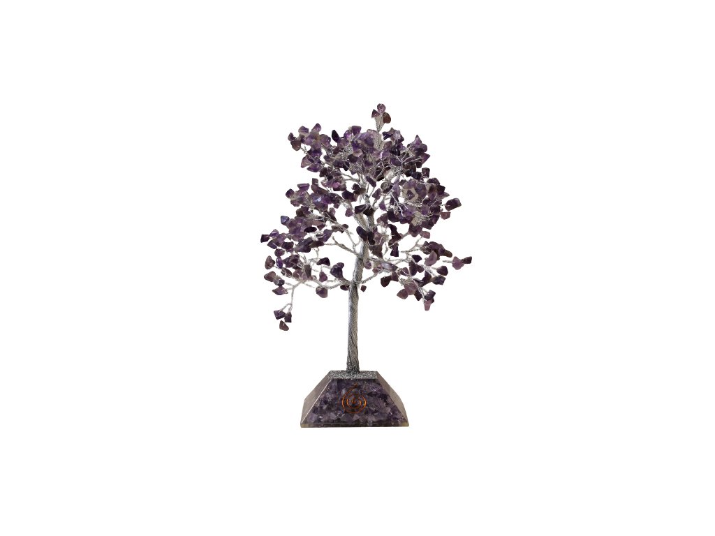 Stromek Štěstí s Orgonitovým Podstavcem - 320 Kamínků - Ametyst