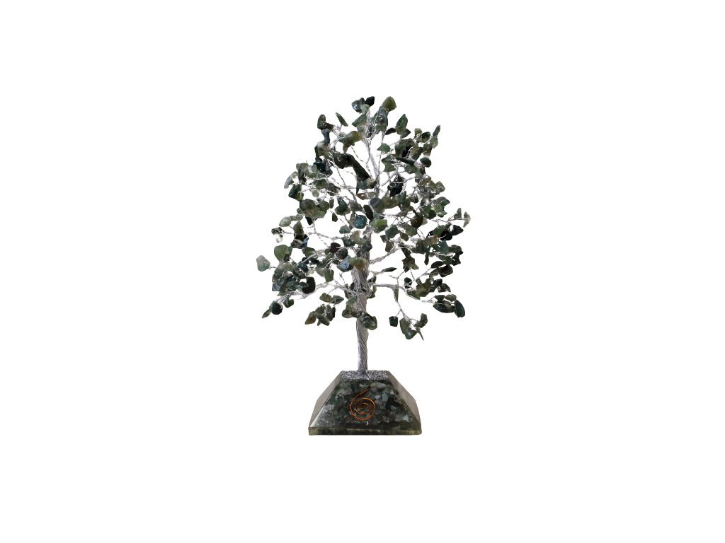 Stromek Štěstí s Orgonitovým Podstavcem - 320 Kamínků - Mechový Achát