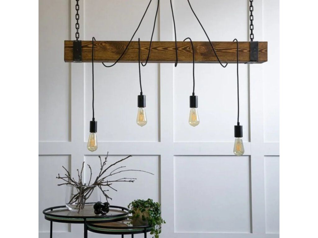 Nová verze paprskové lampy LP022 s mírně tenčí šňůrou. Jedná se o originální nabídku pro všechny milovníky stylového a nevšedního stylu. K vytvoření této lampy byly použity následující materiály: černý drát, borovicové dřevo a kov. Dřevěná závěsná lampa LP022 ve formě paprsku je vybavena čtyřmi světelnými zdroji. Modely, ve kterých je lampa zavěšena na řetízku a žárovky nemají stínidlo, se budou dobře hodit k půdním uspořádáním. Svítidla tohoto typu vypadají skvěle s dekorativními Edisonovými žárovkami, se žhavícím vláknem, které je designovým prvkem moderního osvětlení.
