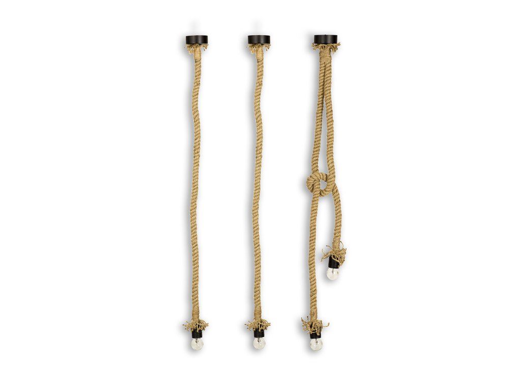 Sada řetězových lamp LP005 se skládá ze dvou jednoduchých lamp a jedné dvojité lampy. Vyrobeno z ručně pleteného silného lana. Lampy lze libovolně kombinovat a lano lze libovolně svázat a vytvářet tak fantastické kombinace. Originálním nápadem na poutavý dekorativní doplněk je ozdobit interiér takovou sadou provázkových lamp.
