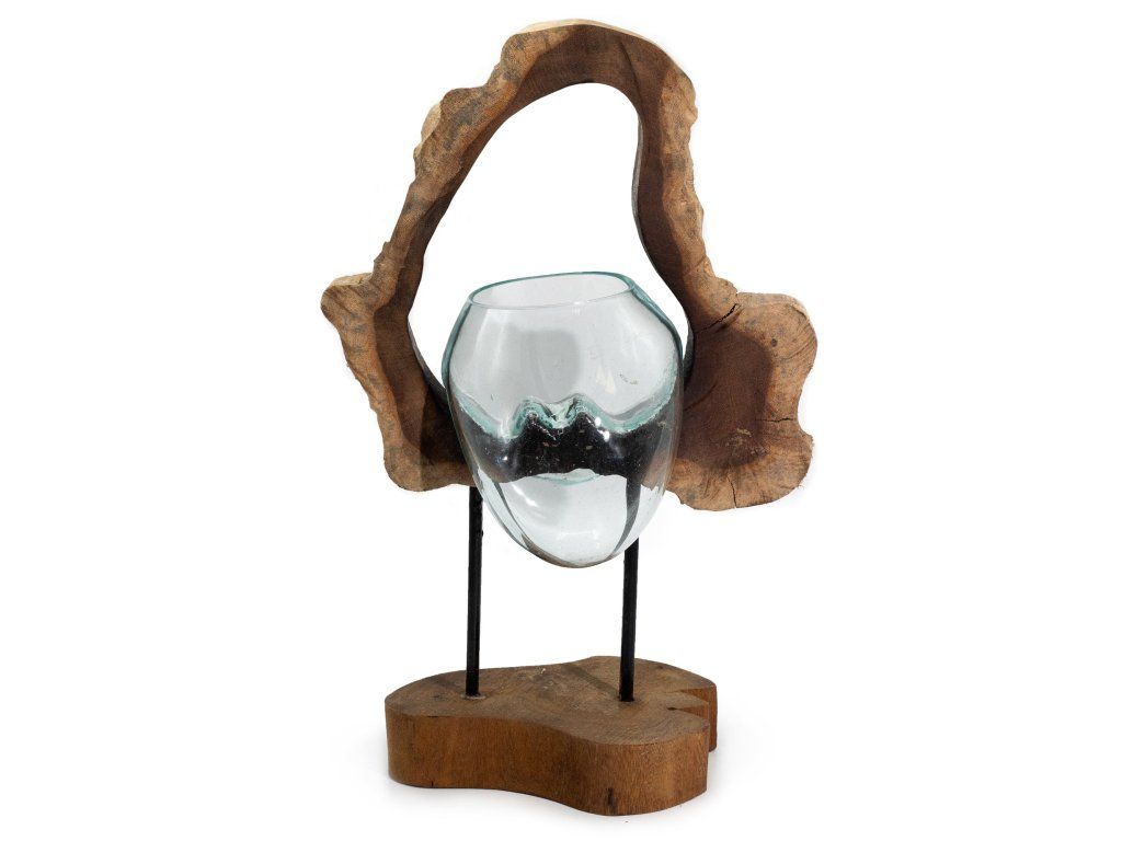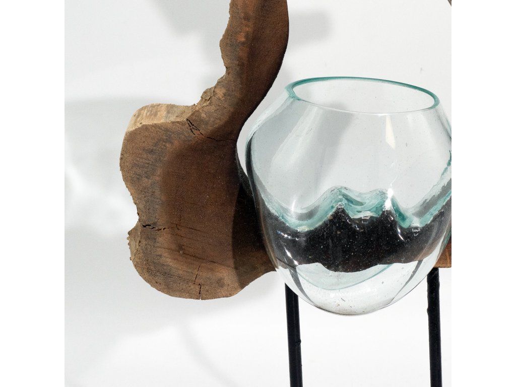 Tavené Sklo na Dřevě - Váza na Dřevě