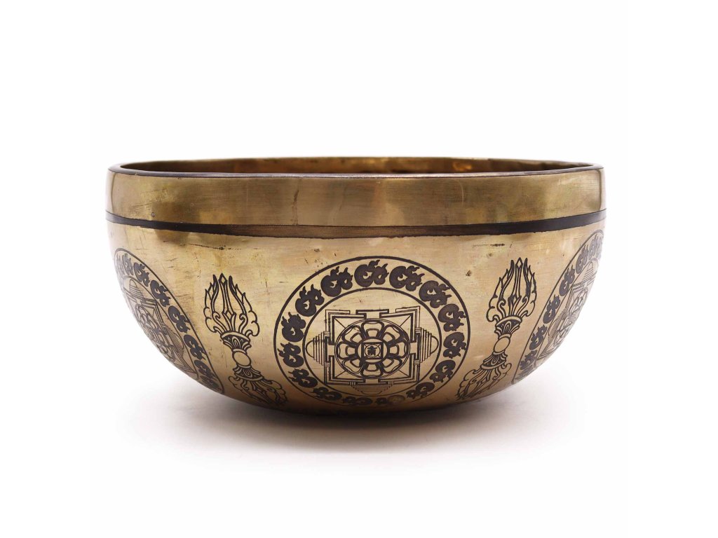 V srdci Nepálu, kde se starodávné tradice a duchovní moudrost sbližují, tibetští mniši vetkali své odborné znalosti do každého detailu těchto nádherných zpívajících misek. Každá miska, vyrobená s úctou a péčí, je sama o sobě mistrovským dílem, které rezonuje se samotnou podstatou himálajských hor. Tato miska, ručně vyrobená v Nepálu, vyrobená ze směsi mosazi, mědi, bronzu, železa a stříbra, ztělesňuje staletou tradici. Mantry jsou posvátné zvuky, slova nebo fráze, které se často používají při meditacích a zpěvech. Rytiny specifické mantry na této misce nesou její jedinečné vibrace a umožňují jednotlivcům spojit se s její vlastní duchovní silou a významem během meditace.