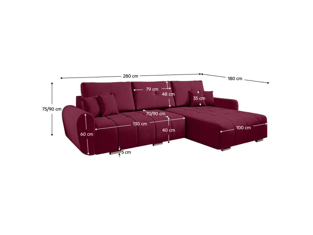 Materiál: látka Monolith 59 Odolnost proti otěru podle testu Martindale: 100 000 cyklů Barva: vínová Rozměry (ŠxHxV): 280x180x75/90 cm Rozkládací Plocha na spaní (ŠxD): 134x230 cm Výška sedu: 40 cm Hloubka sedu: 70/90 cm Šířka sedáku: 130 cm Šířka otomanu: 100 cm Na nožičkách Materiál nožiček: plast Barva nožiček: stříbrná Výška spodního prostoru od podlahy: 5 cm Výplň: pružina falista/PUR pěna Univerzální provedení Celočalouněná Rohová S úložným prostorem Dodáváno s polštáři Rozměry dekorativních polštářů (ŠxV): 35x35 cm Rozměry opěrkového polštáře (ŠxV): 79x48 cm Voděodolný materiál Dekorativně prošívaná Dodáváno v demontu Možnost individuálních objednávek sedací soupravy v 7 barevných provedeních látky Monolith za cenu 22 250 Kč. Při individuální objednávce je nutné zaplatit 20% zálohu z dané částky. Po zaplacení zálohy bude vaše požadavka zadána do výroby. Dodací lhůta 6-8 týdnů.Balení (počet kusů : 3)