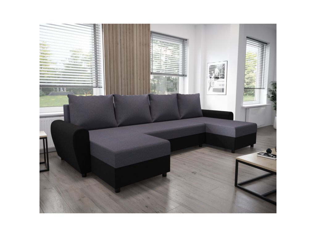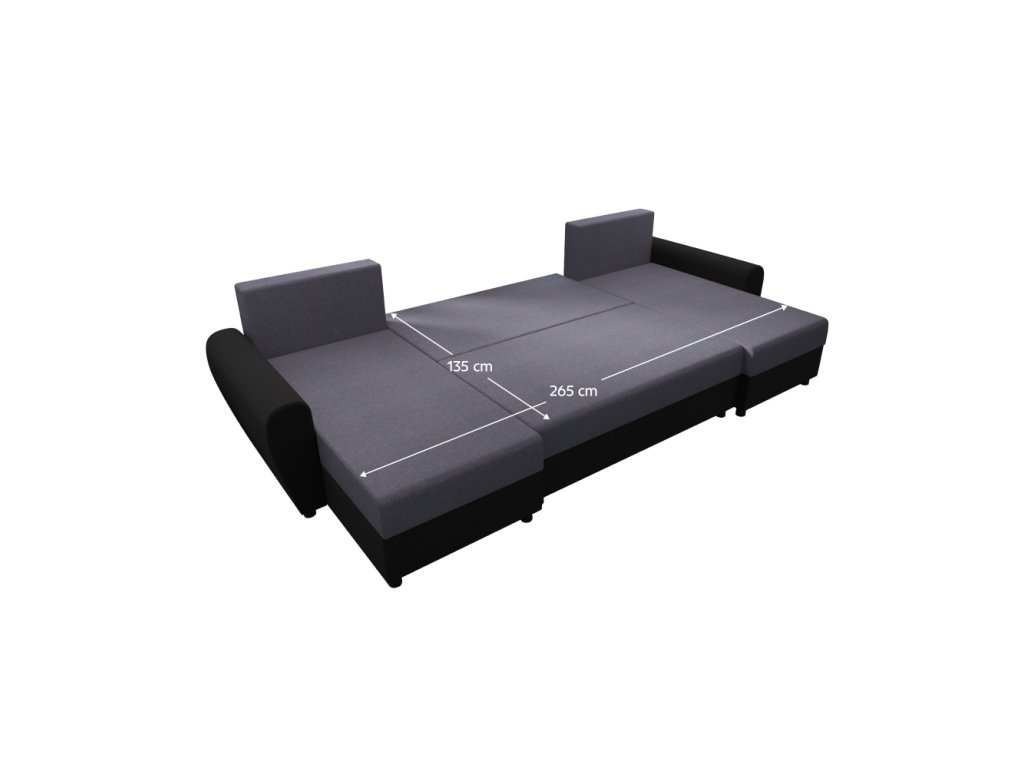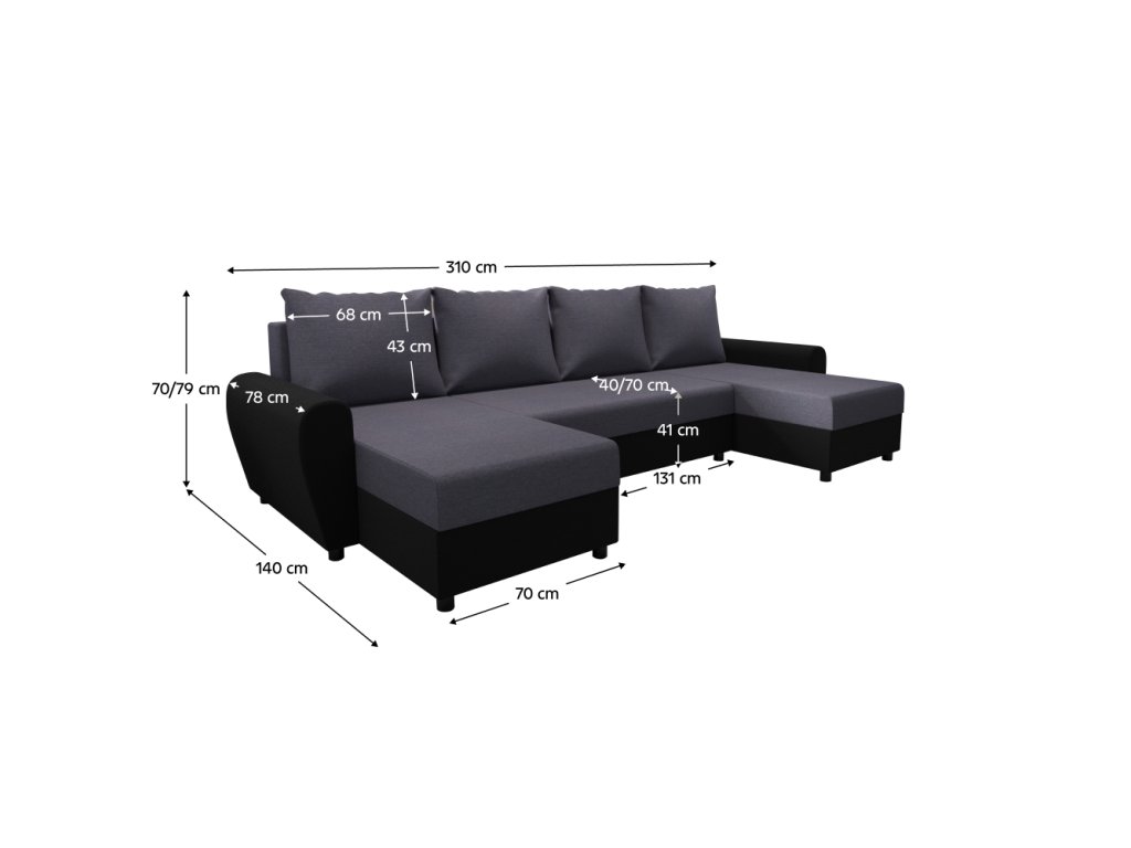 Materiál: látka Twist 20/ekokůže D8 Oděruodolnost látky podle testu Martindale: 45 000 oděrů Oděruodolnost ekokůže podle testu Martindale: 100 000 oděrů Barva: šedá/černá Rozměry (ŠxHxV): 310x140/140x70/79 cm Plocha na spaní (ŠxD): 135x265 cm Výška sedu: 41 cm Hloubka sedu: 40/70 cm Hloubka otomanu bez polštářů: 131 cm Na plastových nožičkách Barva nožiček: černá Výška spodního prostoru od podlahy: 4,5 cm Výplň: pur pěna T28 Rozkládací Univerzální Tvar U S úložným prostorem Dodávána s polštáři Rozměr polštářů (ŠxH): 68x43 cm Dodáváno v demontuBalení (počet kusů : 3)