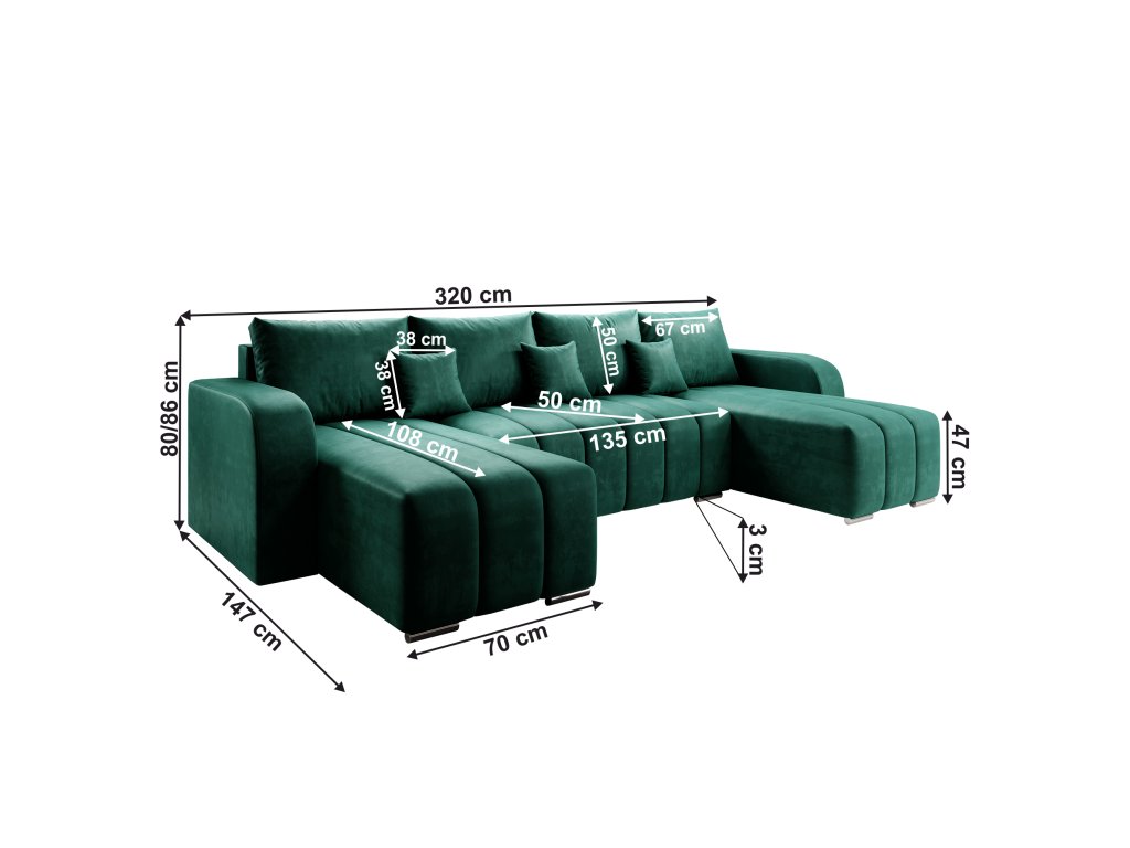 Materiál čalounění: Monolith 85 Oděruodolnost látky podle testu Martindale: 100 000 Barva čalounění: šedá Rozměry (ŠxHxV): 320x147/147x86 cm Plocha na spaní (ŠxD): 130x275 cm Výška sedu: 47 cm Hloubka sedu: 50 cm Šířka otomanů: 70 cm Šířka sedáku: 135 cm Šířka opěrky na ruku: 20 cm Na nožičkách Materiál nožiček: plast Barva nožiček: stříbrná Výška spodního prostoru od podlahy: 3 cm Nosnost na osobu: 90 kg Výplň: bonelová pružina+Pur pěna Rozkládací Celočalouněná Univerzální Dekorativní prošití Voděodolný materiál S úložným prostorem Dodávána s polštáři 4 velké polštáře 3 malé polštáře Rozměry velkých polštářů (ŠxV): 67x50 cm Rozměry malých polštářů (ŠxV): 38x38 cm Dodáváno v demontuBalení (počet kusů : 4)