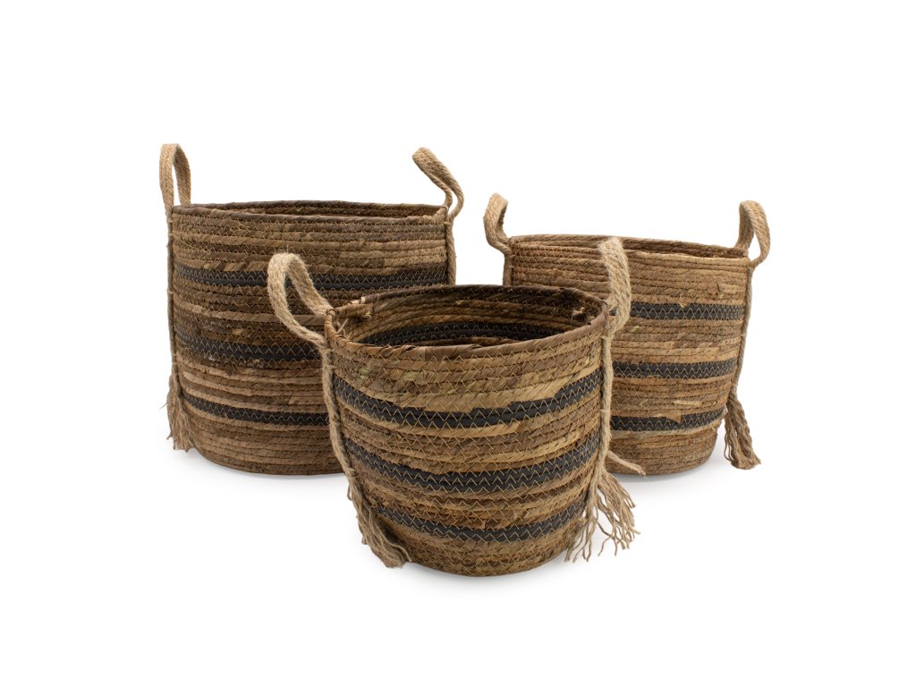 Velké Košíky z Banánových Listů a Mořské Trávy - Přírodní Hnědé - Sada 3 Kusů