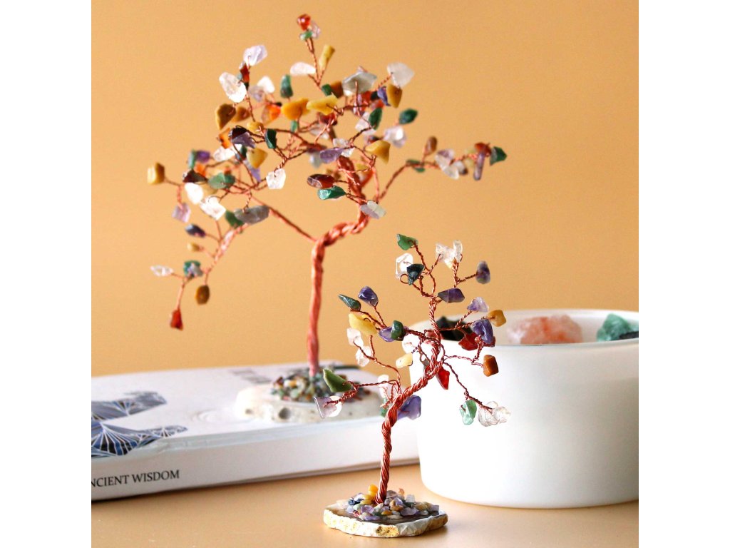 Velký Stromek s Drahými Kameny - Různé - Podstavec z Přírodního Achátu (100 kamenů)