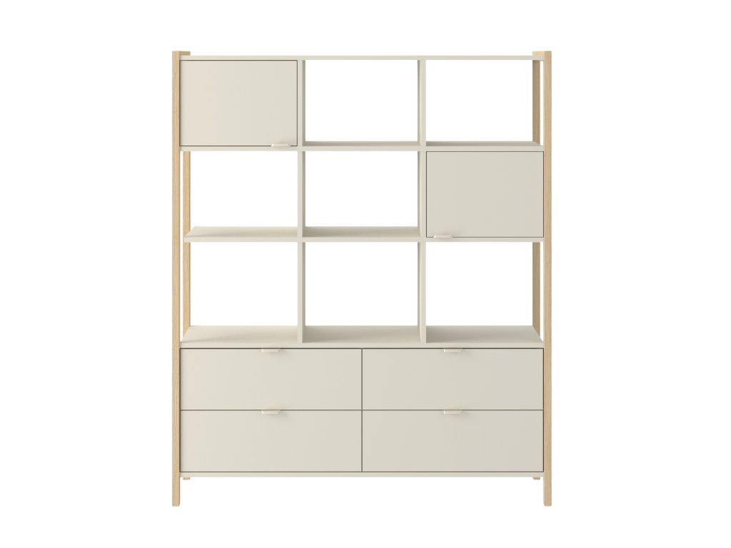 Knihovna Versa Wide je ideálním řešením pro úložný prostor a organizaci v pokoji pro mládež. Je vybavena čtyřmi praktickými zásuvkami, dvěma uzavřenými skříňkami a otevřenými policemi a nabízí dostatek prostoru pro knihy, sešity, hry, dekorace nebo školní potřeby.