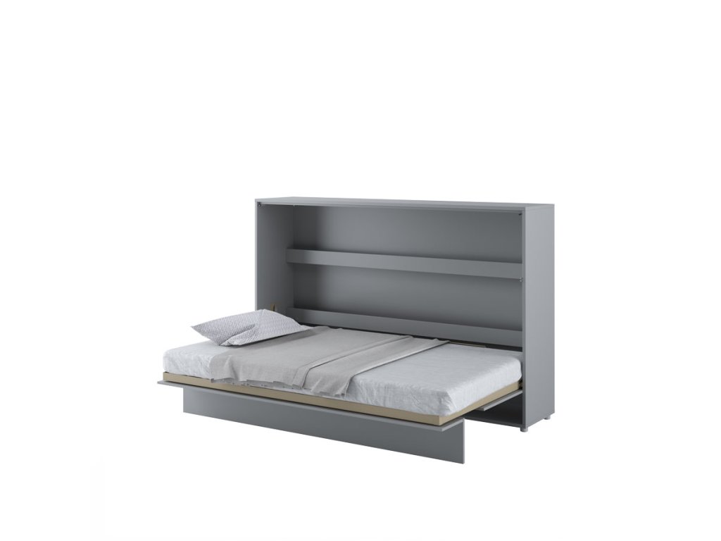 Materiál: kvalitní lamino (korpus 22mm, ostatní prvky 16mm) odolné proti poškrábání, poškození, vlhkosti a vysoké teplotě, ABS hrana, kovový nosný mechanismus, kovový rám postele, tiché zavíraní