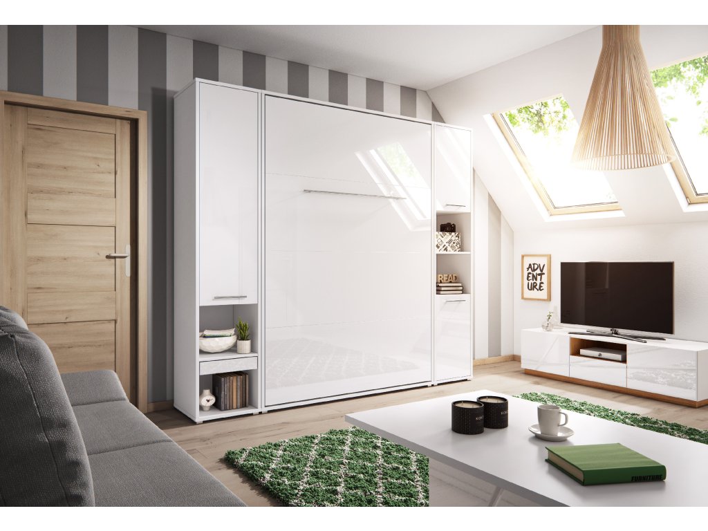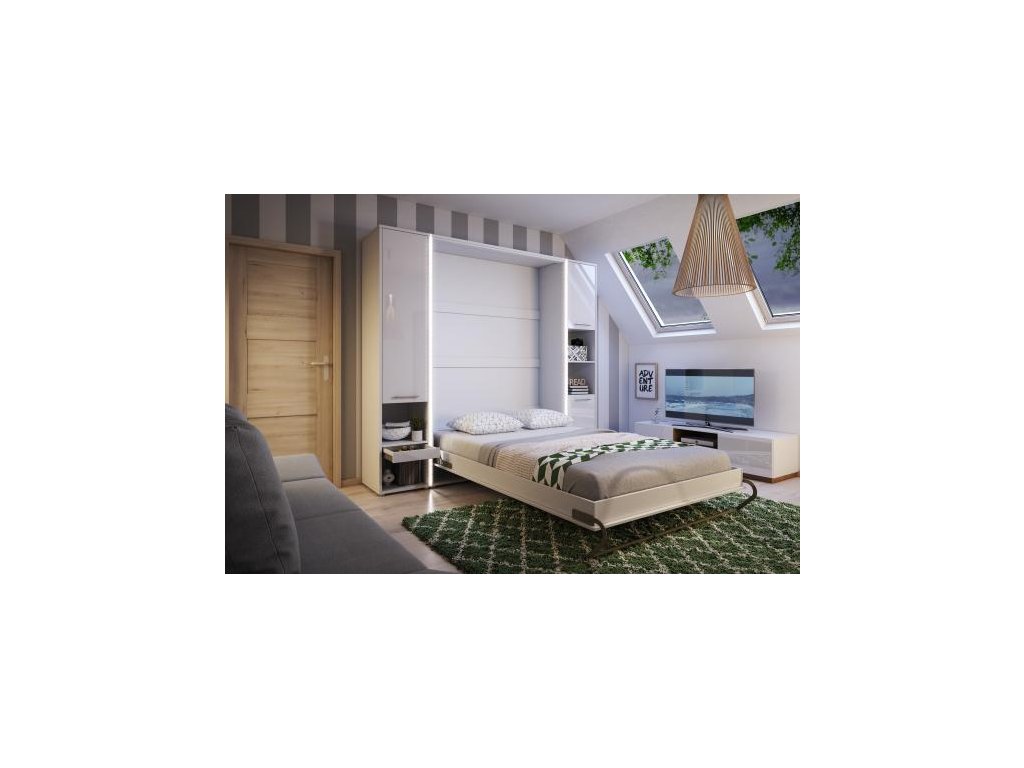 Sklápěcí postel CONCEPT sa skladá z dvou částí - samostatného lůžka a samostatné skříně. V celku jde o jednolitý kus nábytku s lůžkem v pevné části korpusu. Sklápěcí postele CONCEPT se vyklápí vertikálně nebo horizontálně - záleží od typu... Sklápěcí postel si můžete objednat jako jednolůžko tak jako dvojlůžko. Postel se sklápí pomocí pružinového mechanismu. Názornou ukázku jak se postel sklápí nejdete níže ve fotogalerii. Sklápěcí postel má ve standardu pevný kovový rám s lamelovými rošty. K posteli je možné objednat kvalitní matraci s maximální tloušťkou do 18 cm.